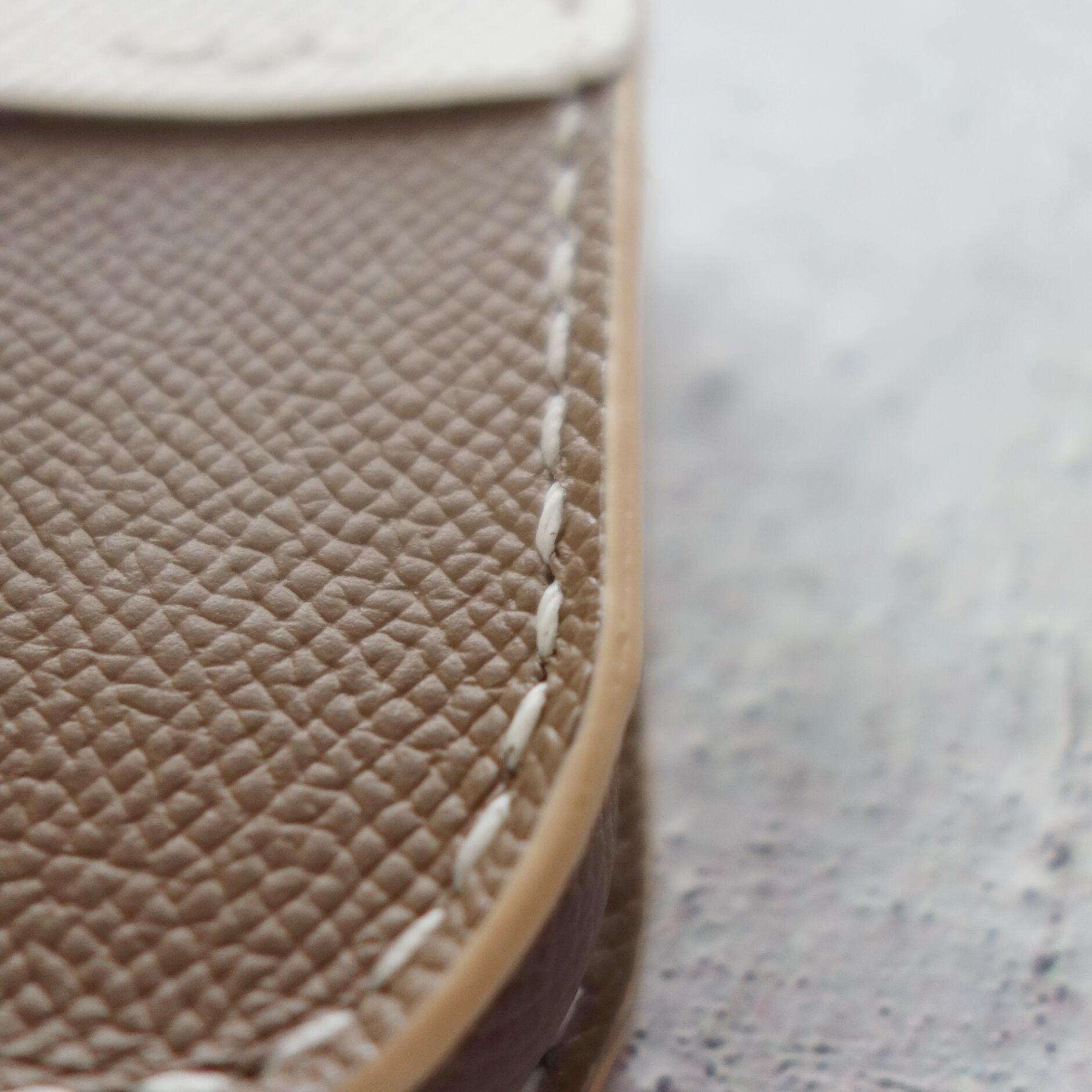フランスの高級レザー"Veau Epsom"のグレージュ×ホワイトで作りました。